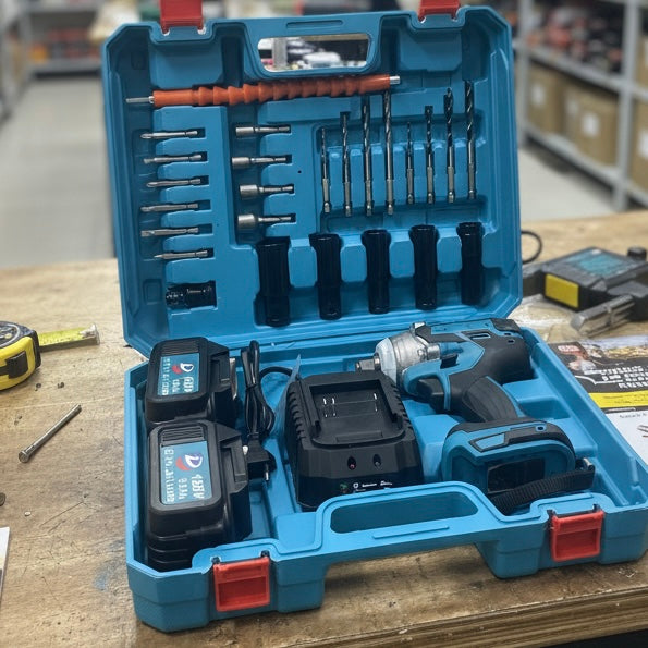- Chave de impacto/parafusadora sem fio, com design ergonómico e empunhadura emborrachada para maior conforto.