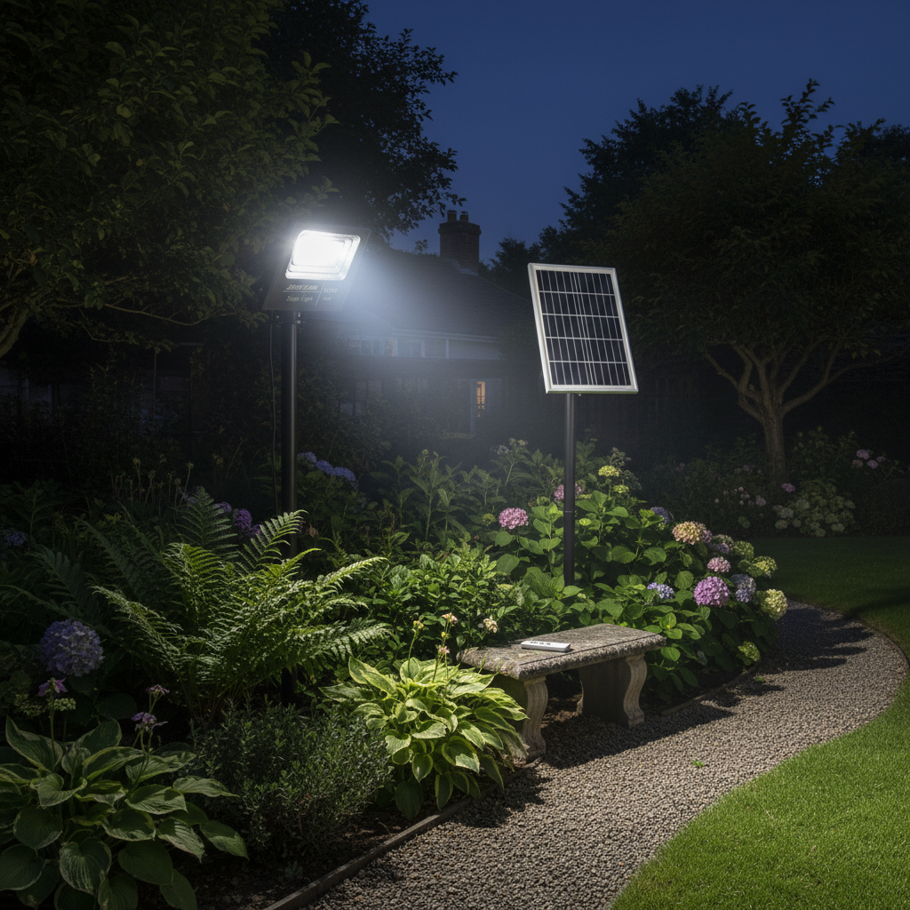 O Projetor Solar JORTAN 500W é a escolha perfeita para quem procura potência, durabilidade e autonomia na iluminação exterior.